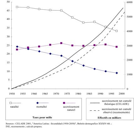 et de l’accroissement naturel (1950-2000).